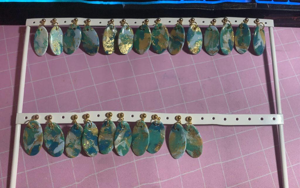 These earrings are made with gold ball posts and are $10 a pair (plus tax and shipping.)