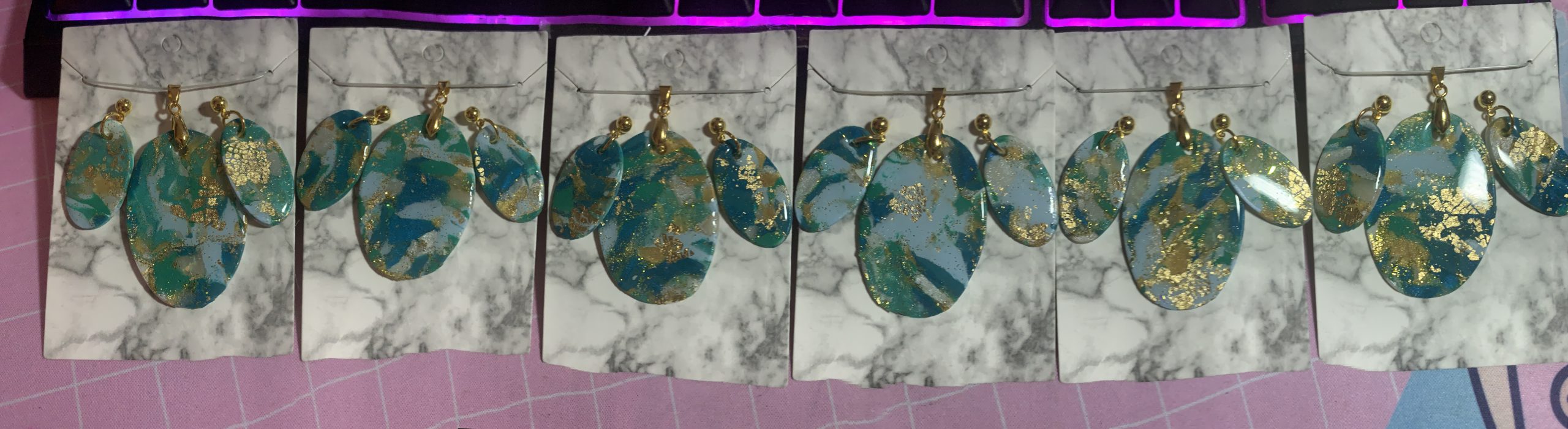 These are $10 a pair (plus tax and shipping) and these are the only 6 pairs I have left they are made with gold ball post earrings and there are not any matching pendants.